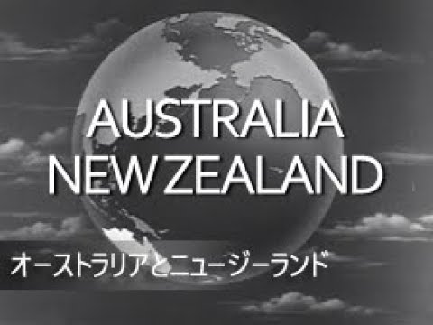 オーストラリアとニュージーランド。 市街地の全景(地名不詳)。 走るジープ。 酪農風景と牛の群れ。 キャンベラの国会議事堂。 議事堂内部とカツラをつけた議員たち。